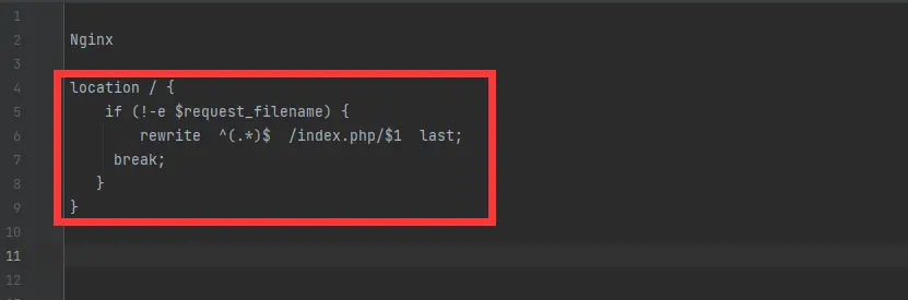 将下方伪静态复制到网站的伪静态配置中,保存: