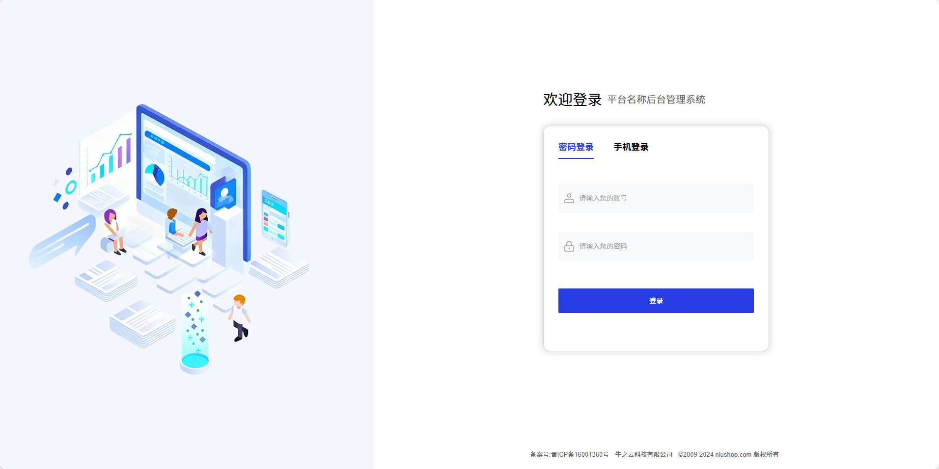 - 浏览器访问域名/admin 即可进入平台端登录页: