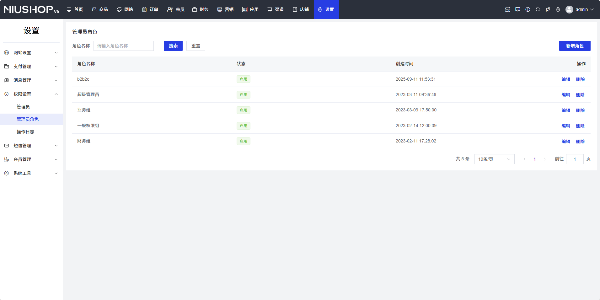 找到需要编辑的管理员角色,点击操作列中的「编辑」按钮,进入编辑角色页面: