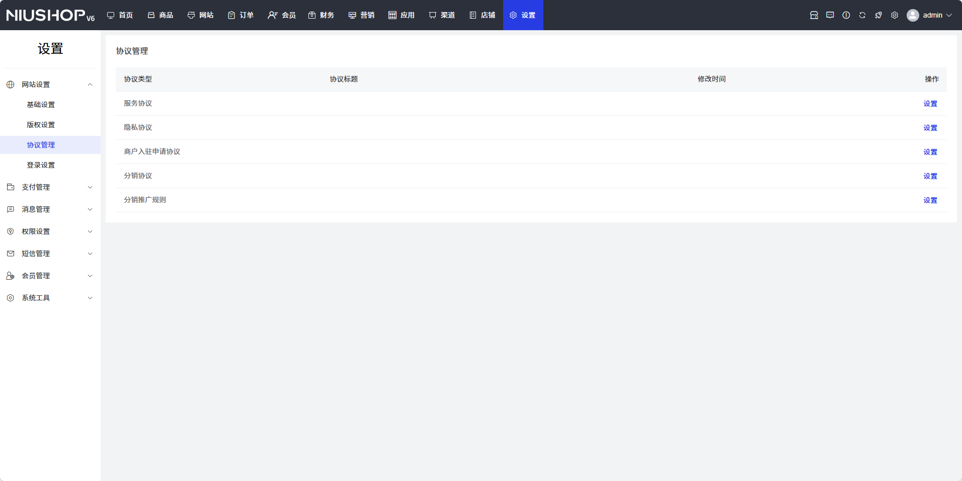 找到需要设置的协议,点击操作列中的「设置」按钮,进入协议编辑页面: