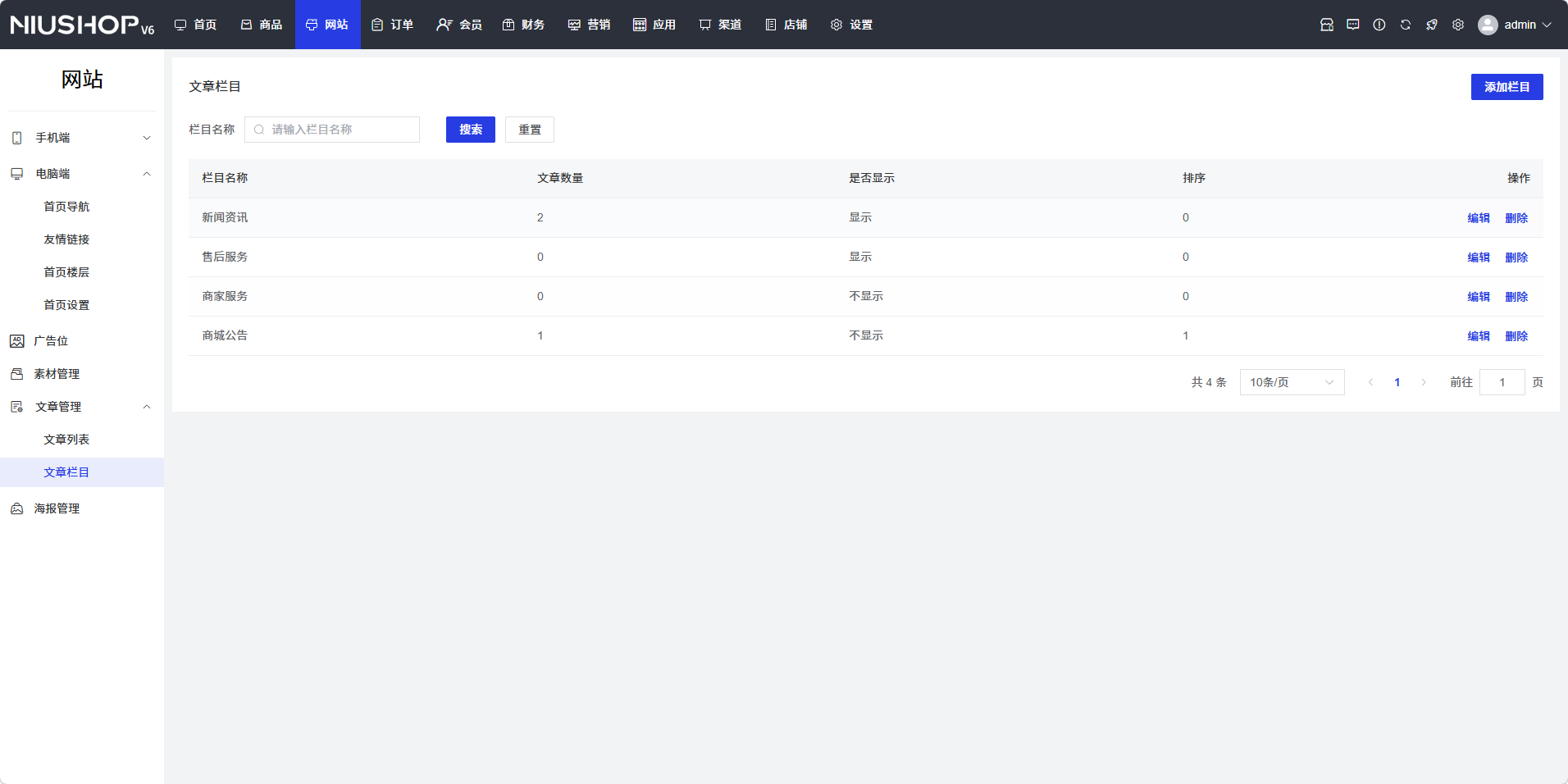 文章栏目管理功能用于管理商城的文章栏目,包括添加、编辑、删除栏目,设置栏目名称、排序等。通过文章栏目管理,可以对文章进行分类组织,方便用户浏览和管理。