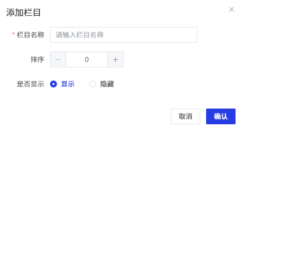 - 在弹出的「添加栏目」对话框中填写以下信息: