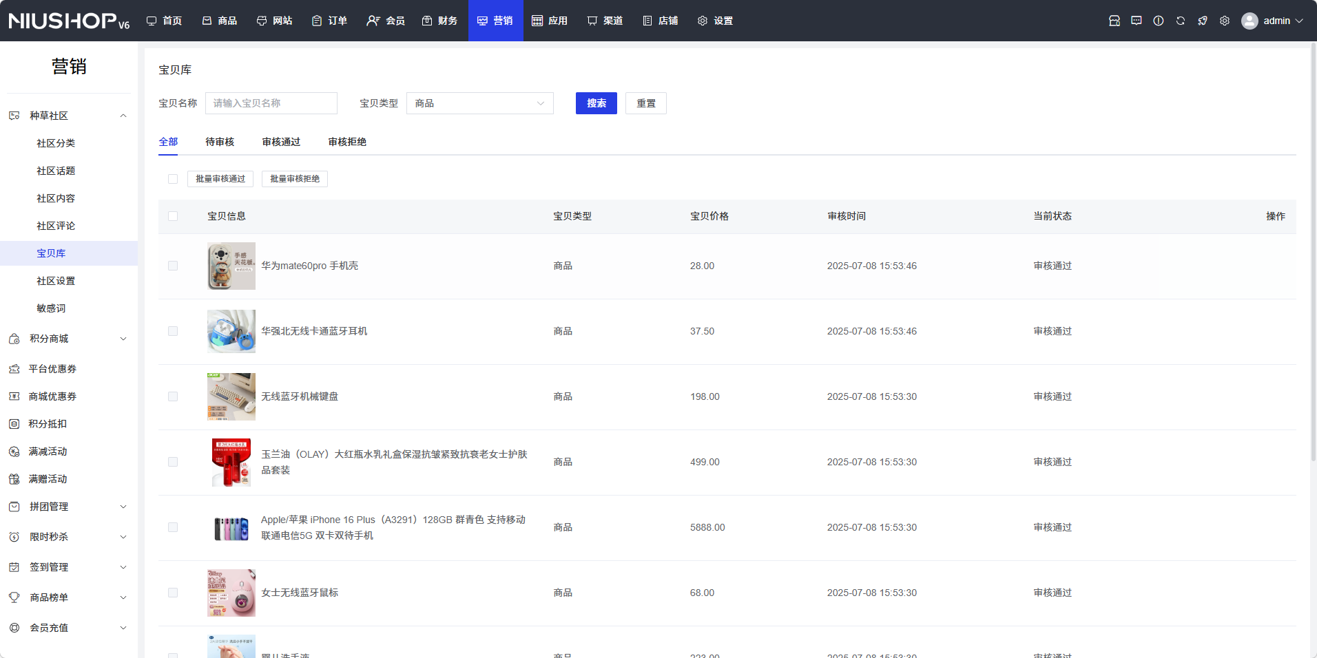 宝贝库功能用于管理种草社区中关联的商品宝贝,包括查看宝贝信息、审核宝贝、设置宝贝状态等。通过宝贝库管理,可以控制哪些商品可以在社区中被关联和推荐,确保社区内容的质量。
