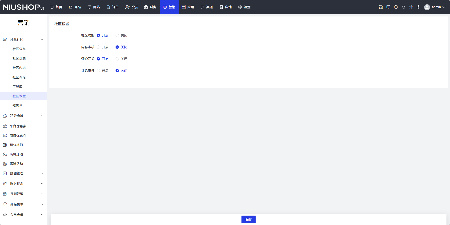 社区设置功能用于配置种草社区的基本功能开关,包括社区功能、内容审核、评论开关、评论审核等。通过社区设置,可以控制社区的整体运行状态和审核机制,确保社区内容的质量和合规性。