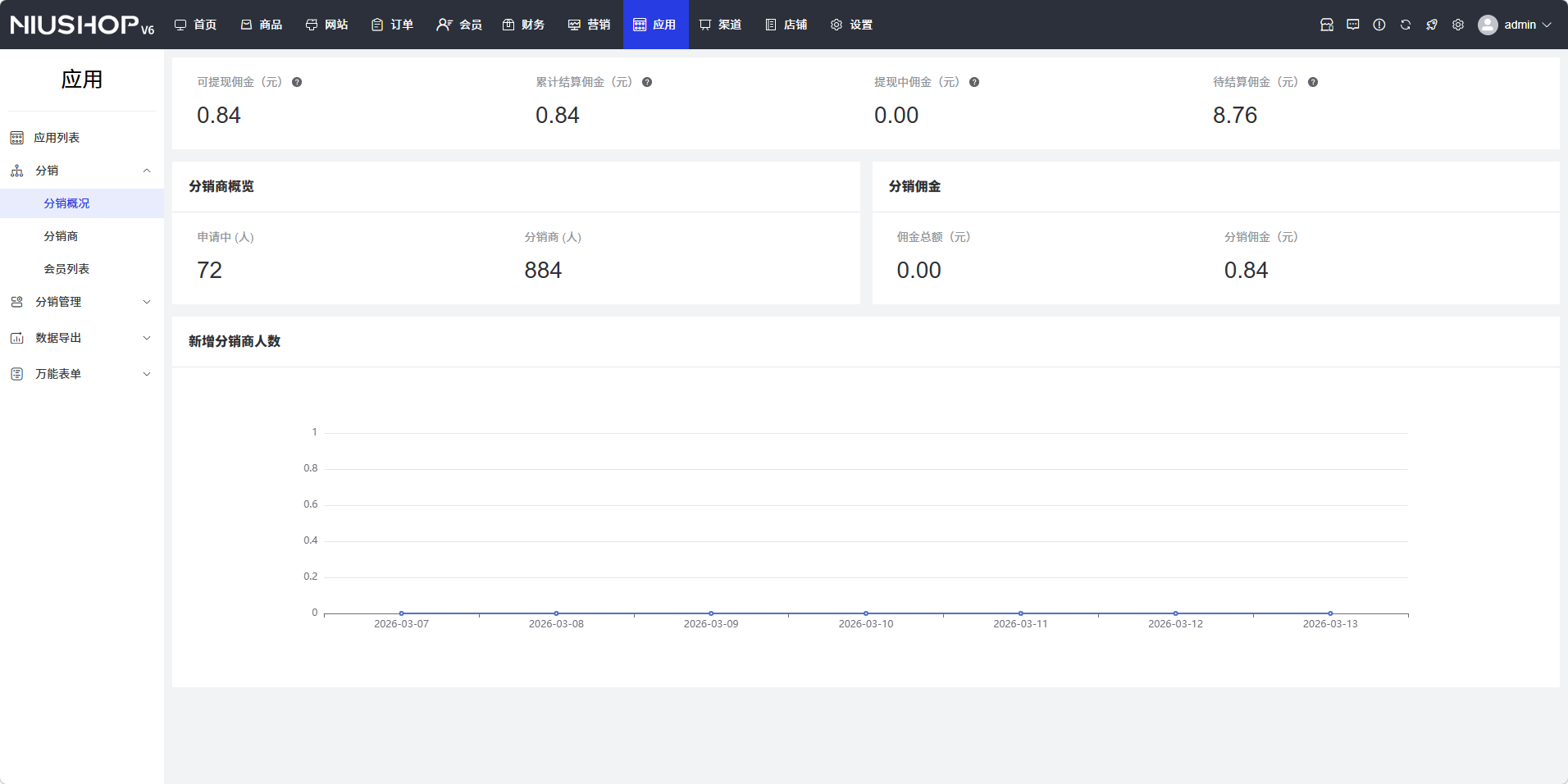 - 申请中:申请成为分销商的人数