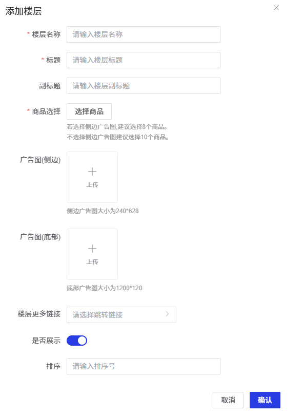 点击页面右上角的「添加楼层」按钮,在弹出的「添加楼层」对话框中填写以下信息: