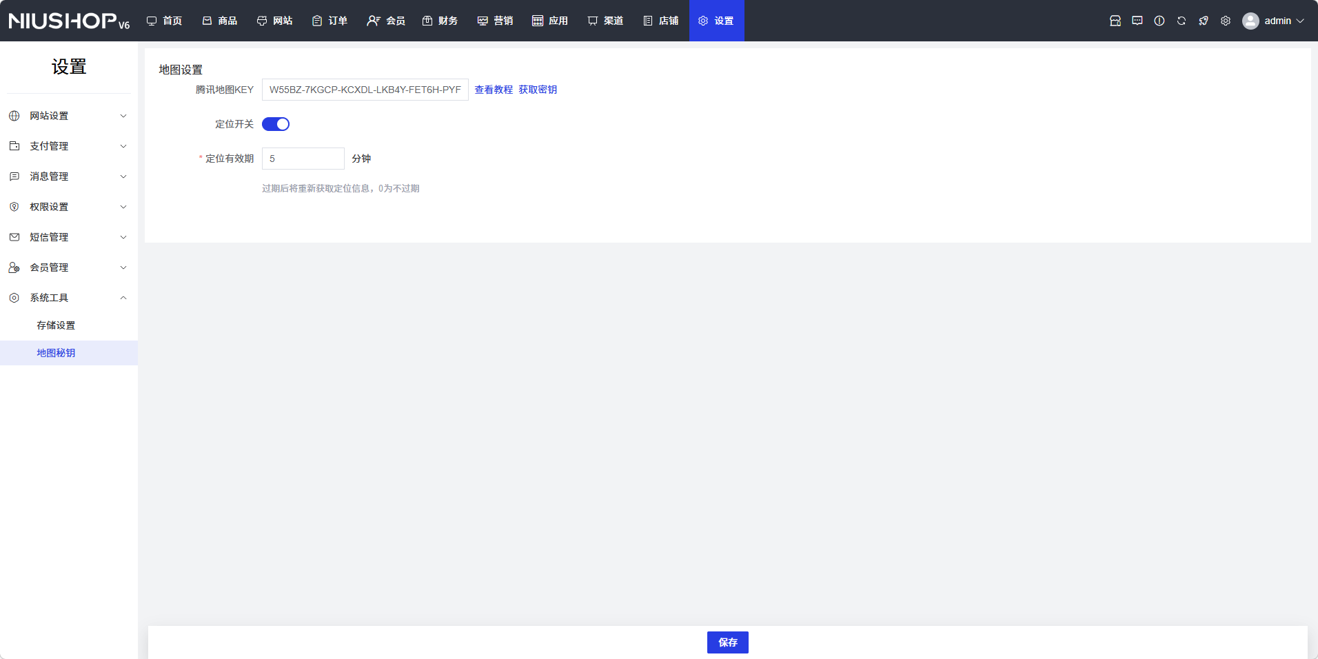 地图秘钥功能用于设置平台的地图相关配置,包括腾讯地图KEY、定位开关、定位有效期等。通过地图秘钥设置,可以确保平台的地图功能正常运行,为用户提供位置相关的服务。