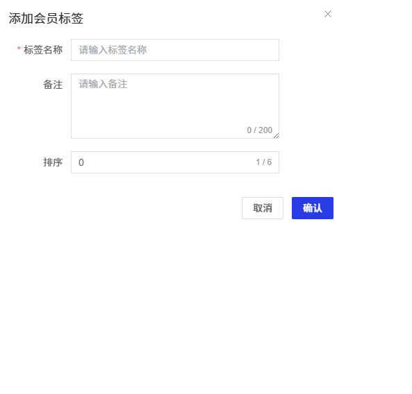 点击页面右上角的「添加会员标签」按钮,在弹出的「添加会员标签」对话框中填写以下信息: