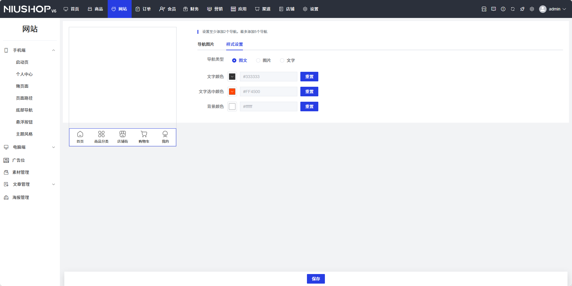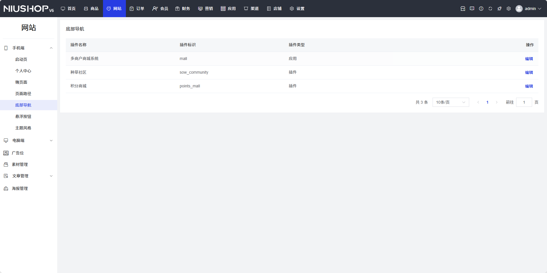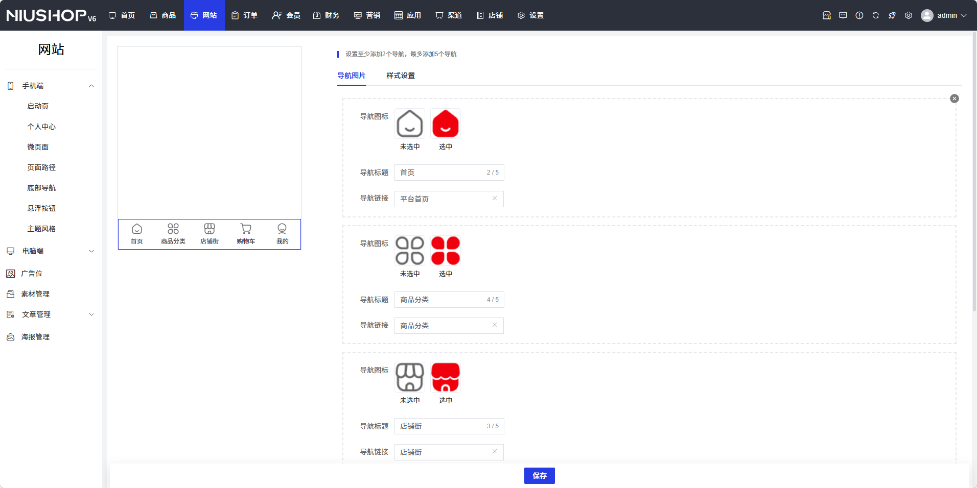底部导航管理功能用于配置商城移动端的底部导航栏,通过底部导航配置,可以为用户提供便捷的页面访问入口。
