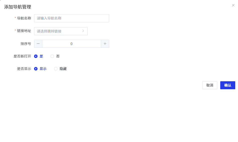 - 在弹出的「添加导航管理」对话框中填写以下信息: