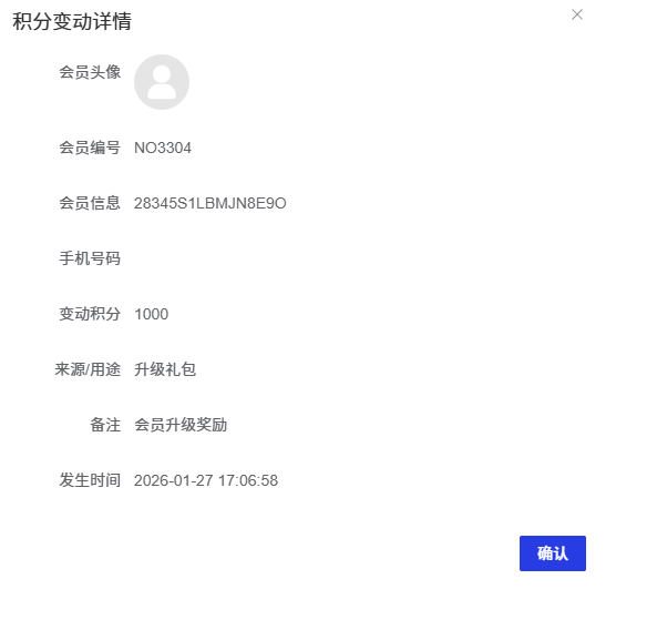 找到需要查看的积分记录,点击操作列中的「详情」按钮,可以查看会员的详细信息。