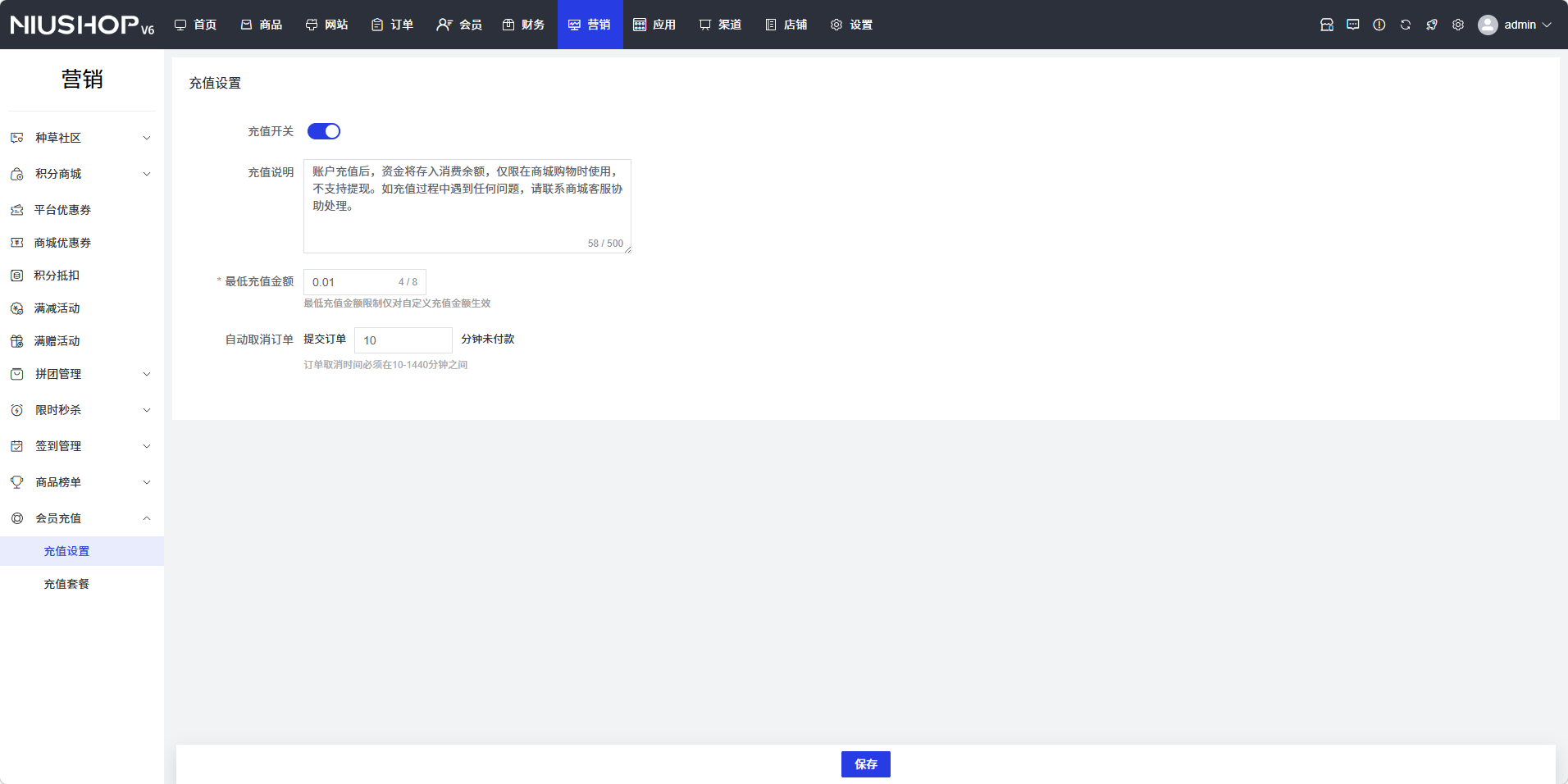 配置完成后,点击页面底部的「保存」按钮,保存充值设置。