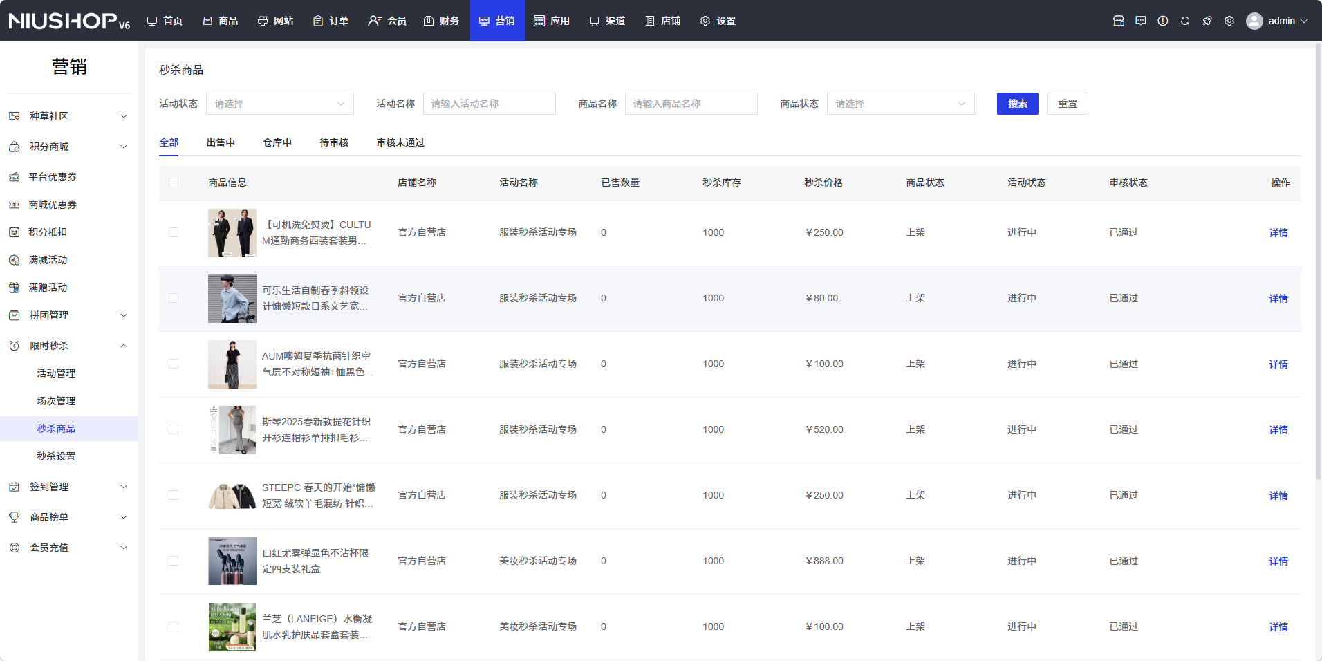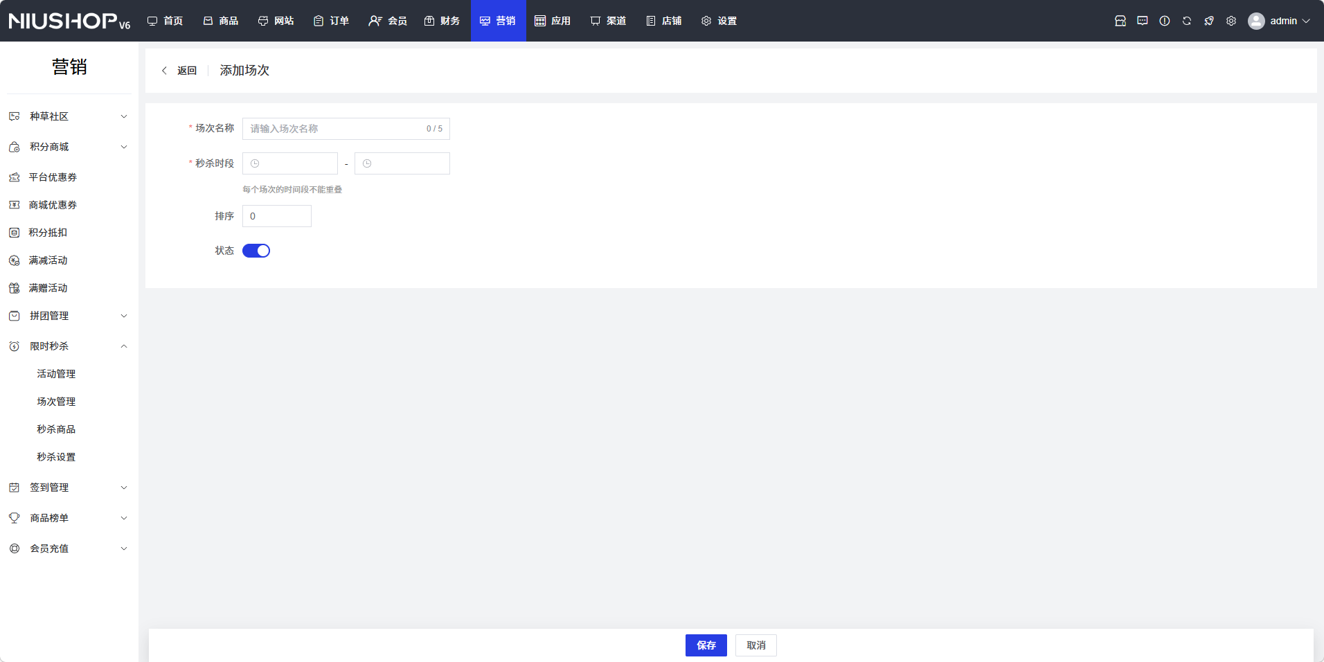 - 秒杀时段:选择场次的开始时间和结束时间