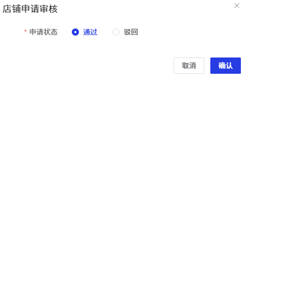 找到需要审核的店铺申请,点击操作列中的「审核」按钮,在弹出的「店铺申请审核」对话框中:
