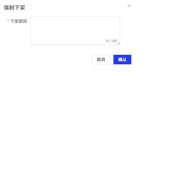 - 在弹出的「强制下架」对话框中,输入下架原因