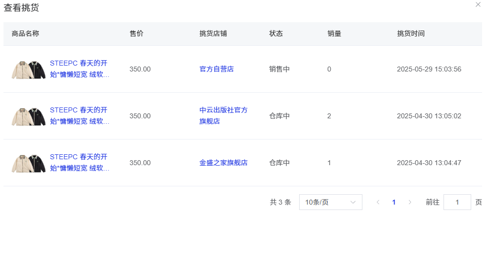 点击商品操作列中的「查看挑货」按钮,可查看挑货商品信息。