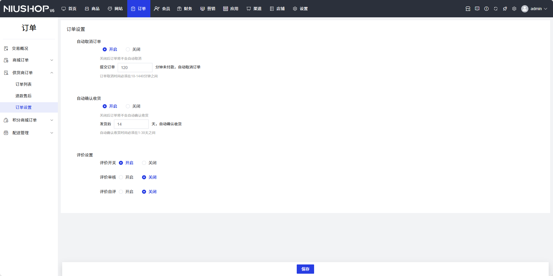 供货商订单设置功能用于配置供货商订单的相关参数,包括自动取消订单、自动确认收货、评价设置等。通过供货商订单设置,商家可以根据实际业务需求调整供货商订单的处理规则,提高订单管理效率。