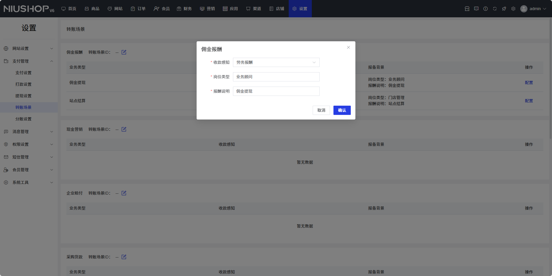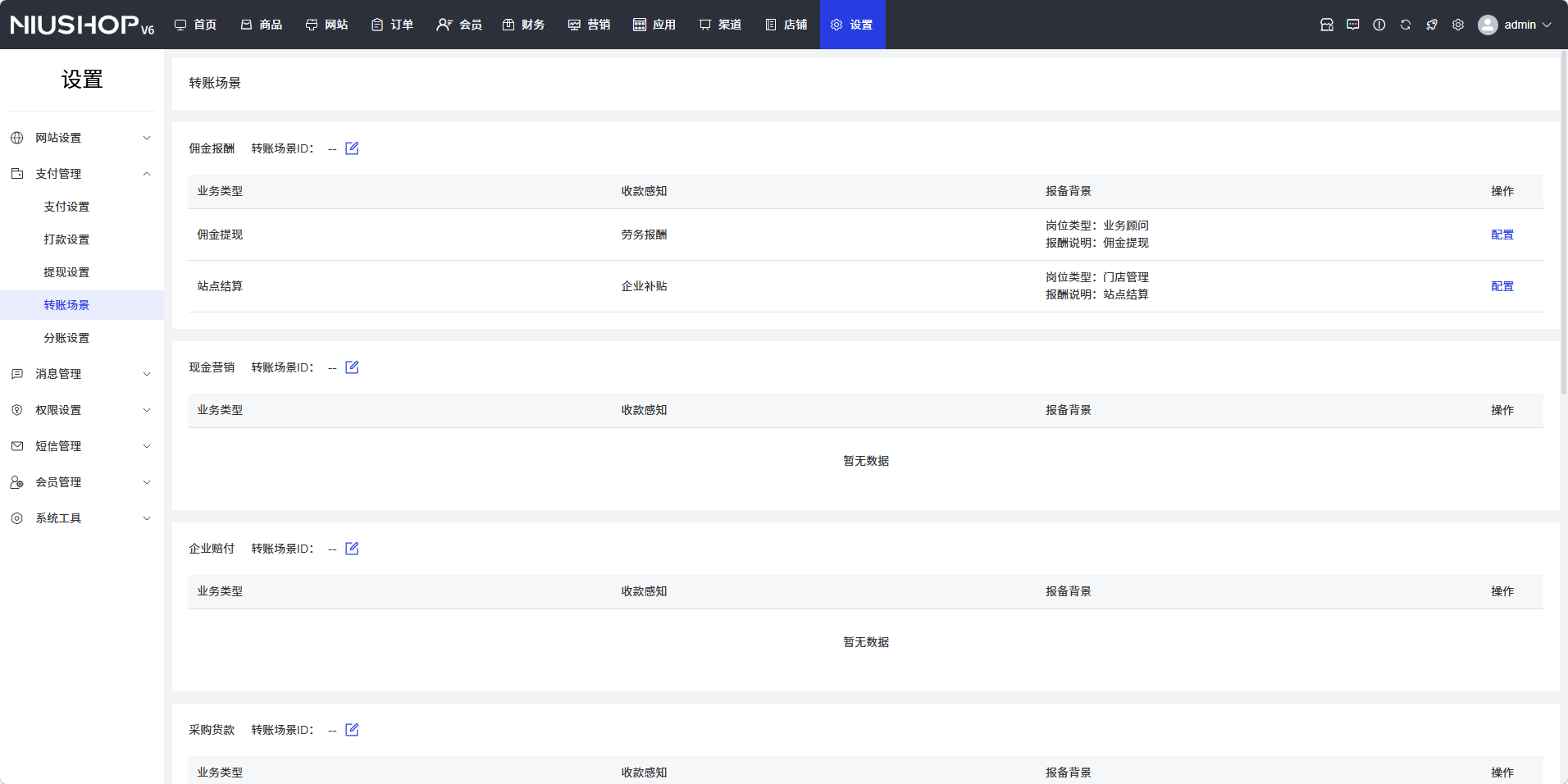 转账场景功能用于设置平台的转账场景通过转账场景设置,可以确保平台的转账操作按照不同场景进行分类管理,提高资金管理的效率。