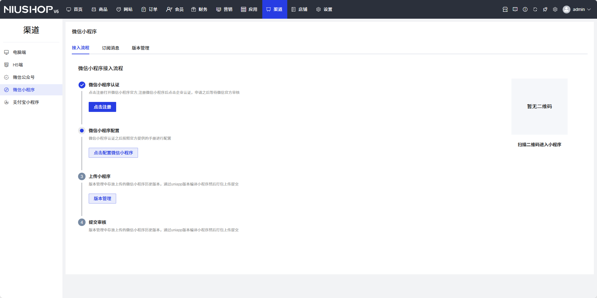 微信小程序功能用于配置平台的微信小程序,包括接入流程、订阅消息和版本管理等。通过微信小程序设置,管理员可以将平台与微信小程序进行绑定,实现微信小程序的各项功能,提升用户体验。