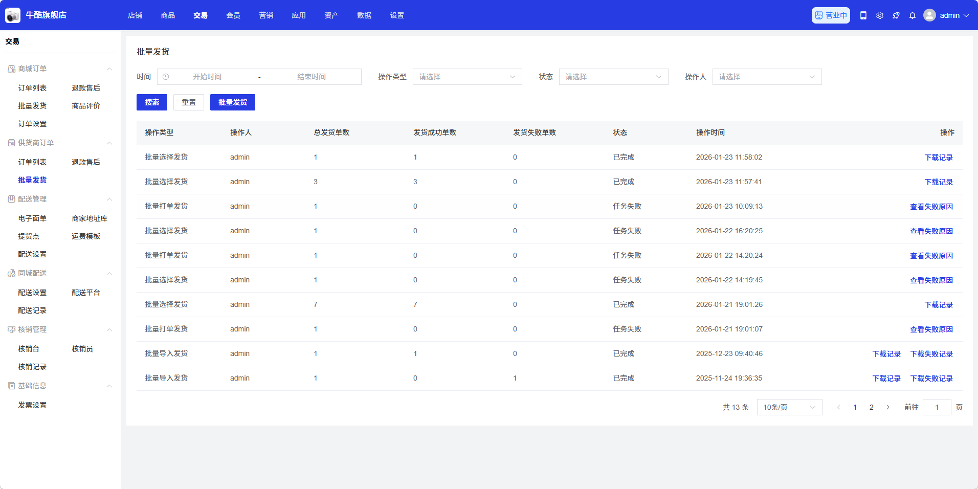 - 失败:批量发货操作失败,需要查看失败原因并重新操作