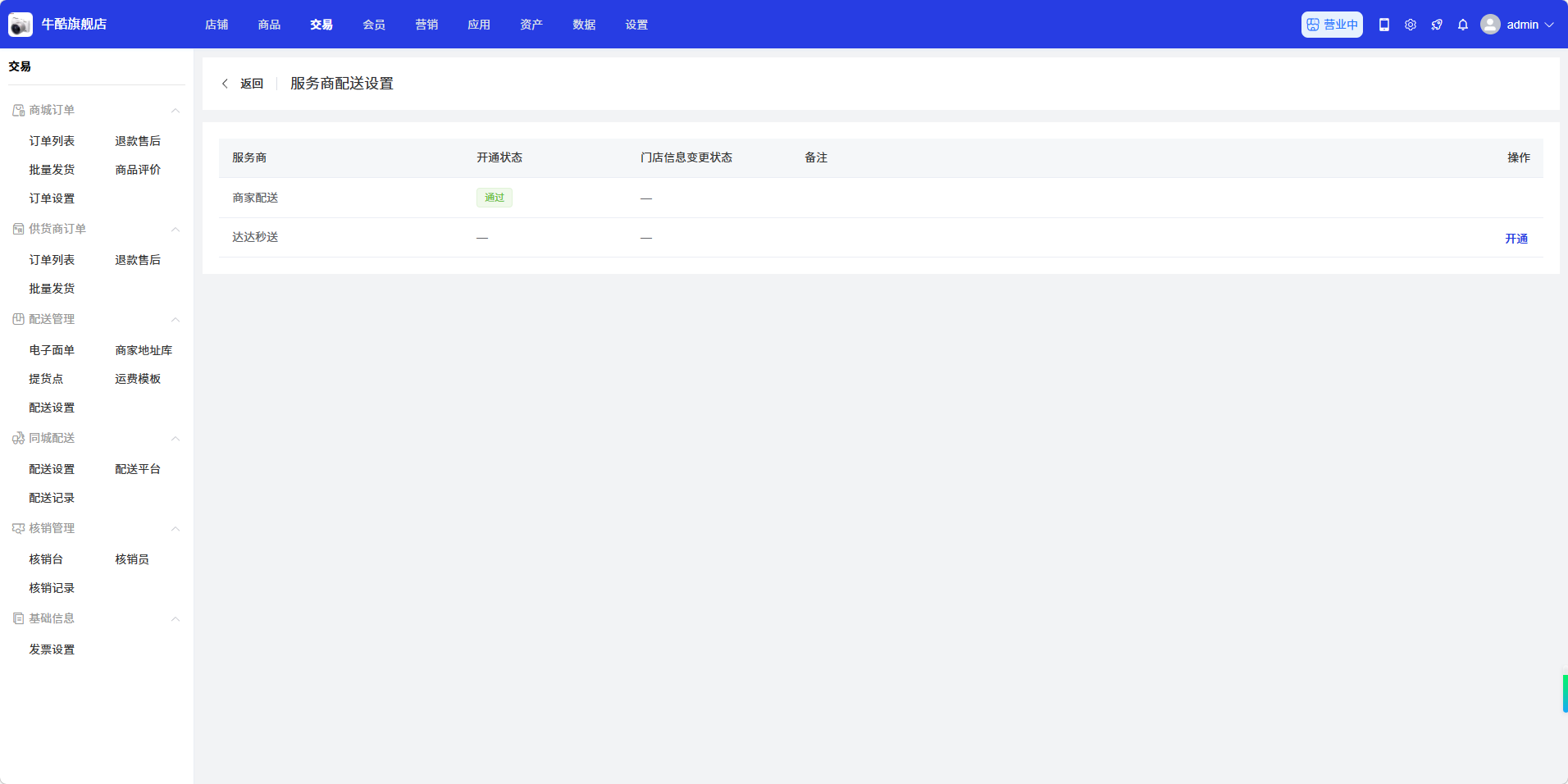 - 操作:对服务商进行开通操作