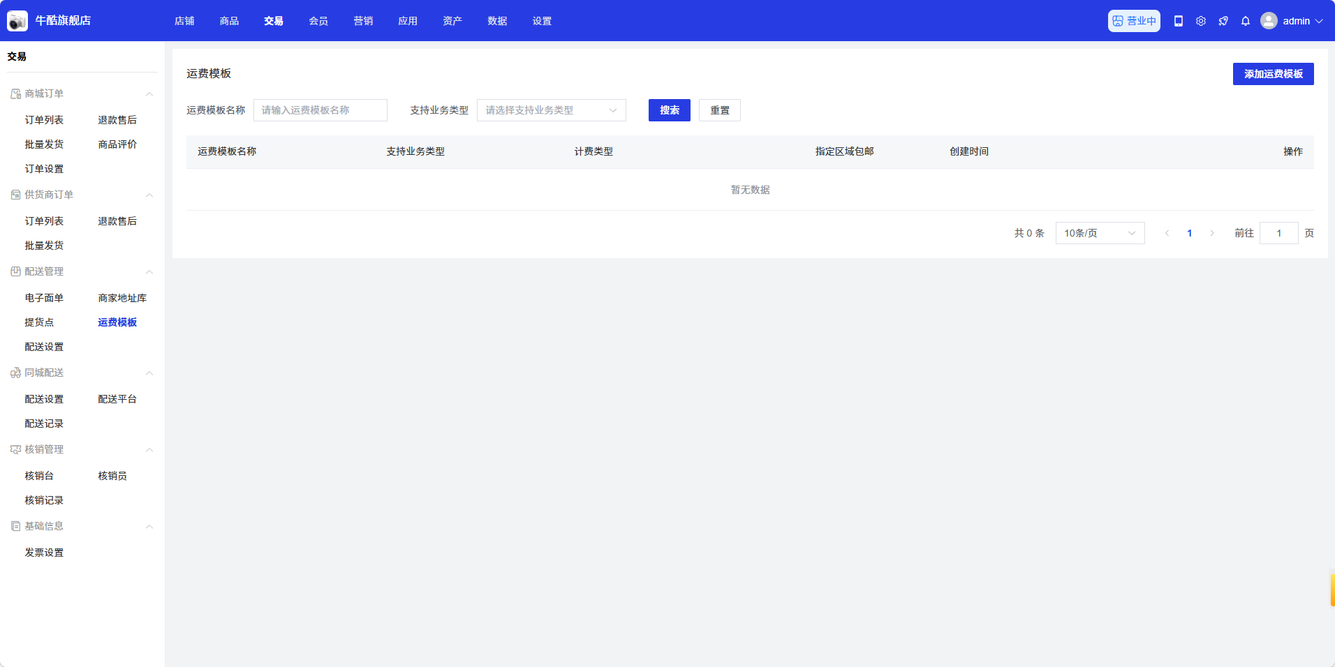 - 运费模板名称:输入模板名称进行搜索