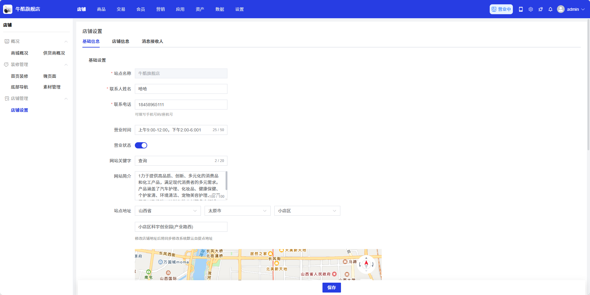 编辑完成后,点击页面底部的「保存」按钮,保存店铺设置。保存后,您的店铺信息将更新为新的设置。