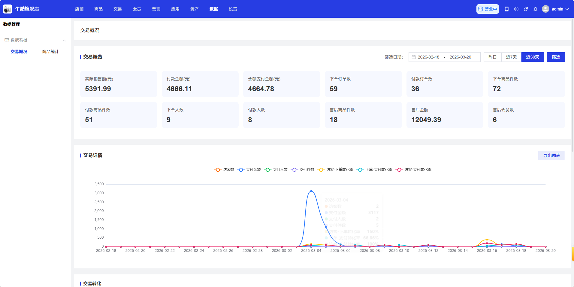 - 交易转化率:展示交易转化率图表