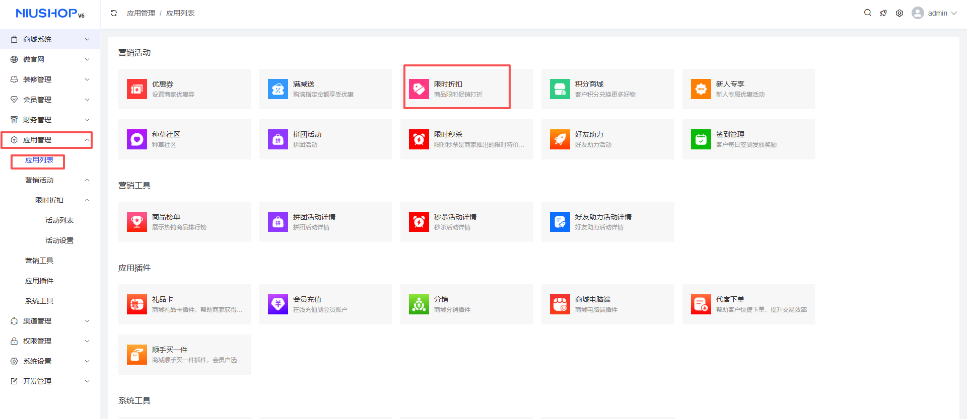 应用管理 > 应用列表 > 限时折扣 > 活动列表