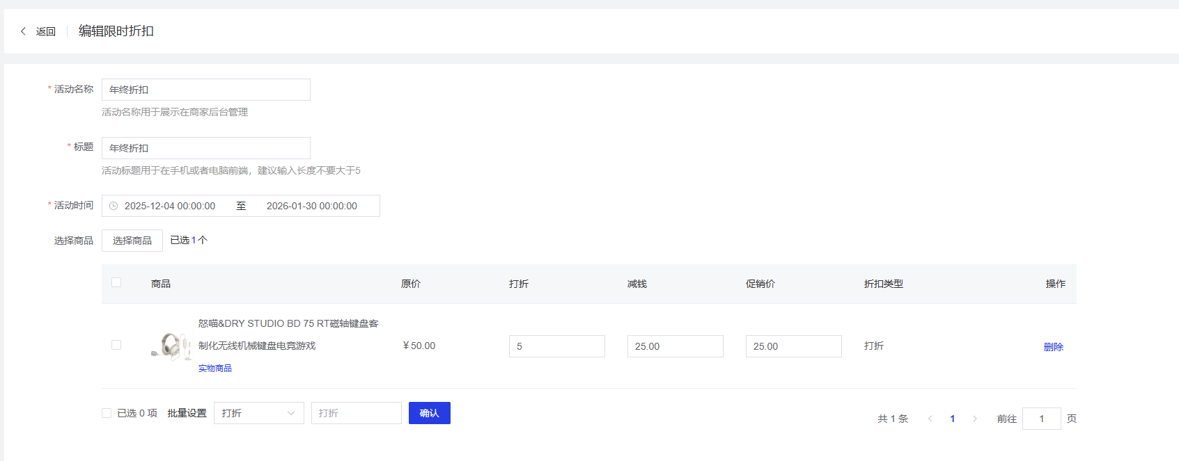 2. 编辑限时折扣活动