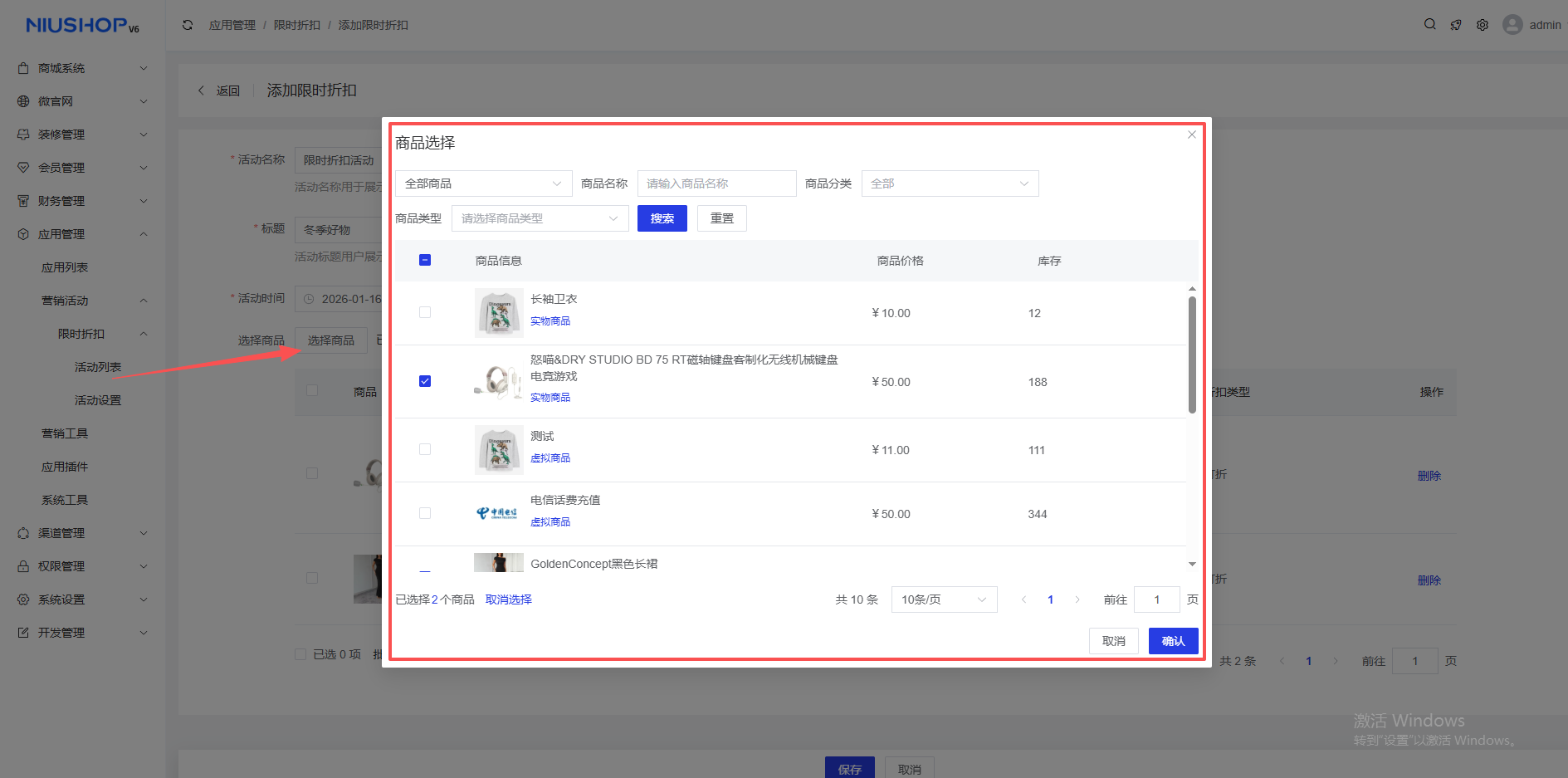 步骤二:设置参与活动的商品