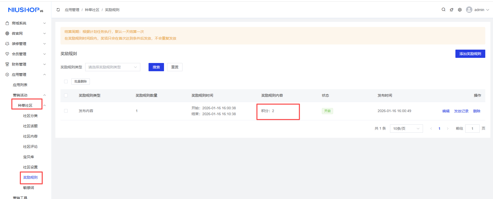 - 种草社区:当种草奖励规则为积分奖励时,用户可在种草社区内发布内容/获赞/获评达到一定数量时,获得积分奖励。