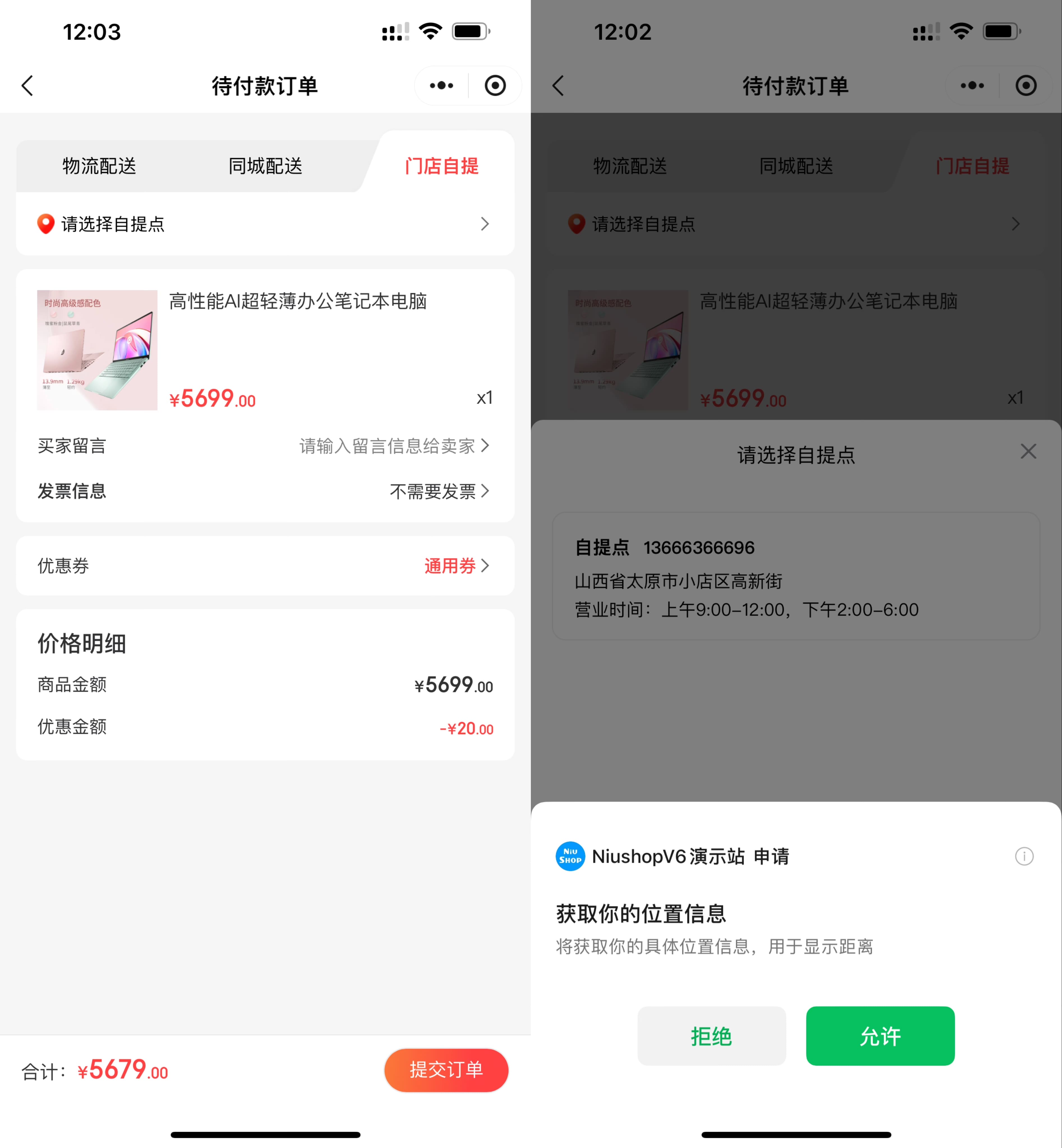 因当前业务涉及附近门店商品自提服务,需获取用户地理位置信息匹配最近的自提门店并提供导航服务,完成商品交易闭环流程,故申请 wx.getLocation 接口,用于匹配最近自提门店、以及提供导航服务。