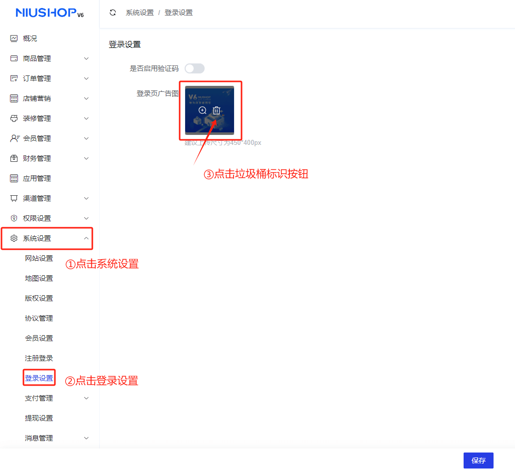 1.点击系统设置,选择登录设置,点击垃圾桶删除
