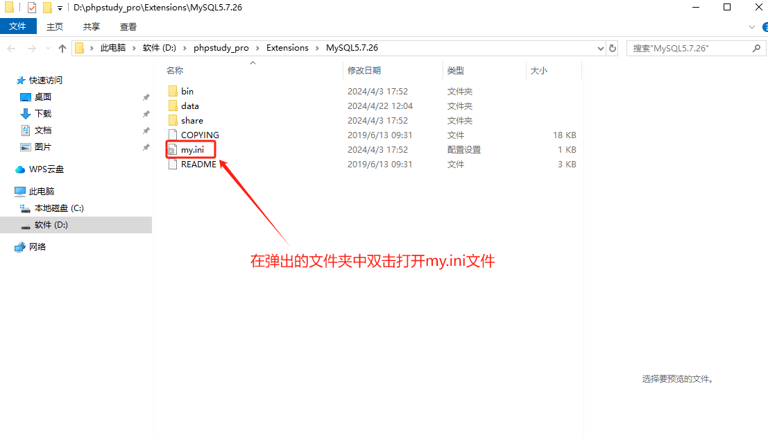 2.弹出的文件夹中双击打开my.ini文件