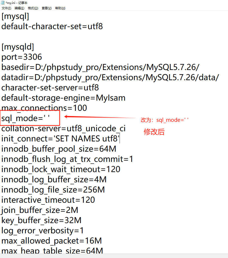 sql_mode=' '