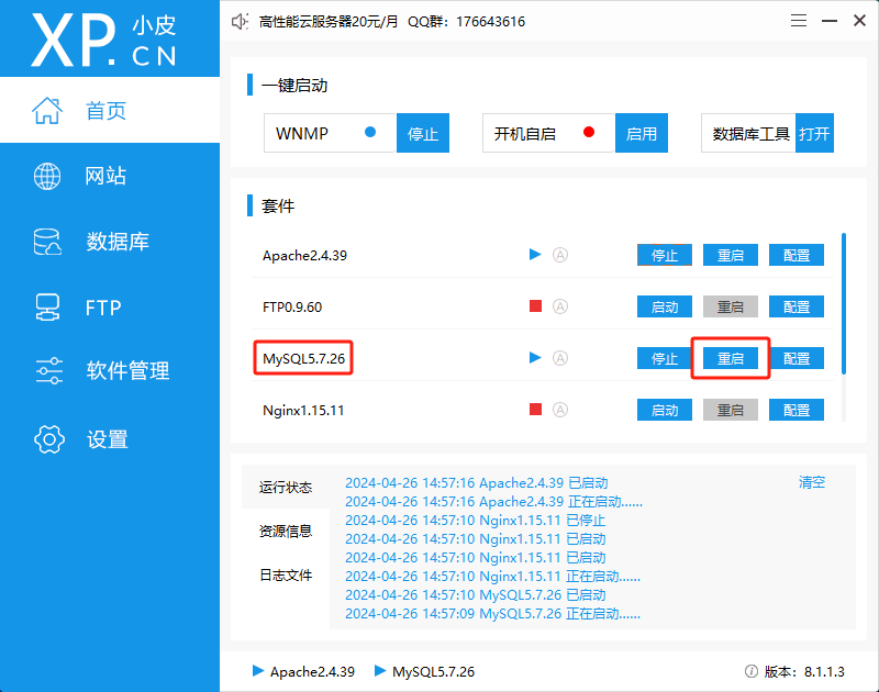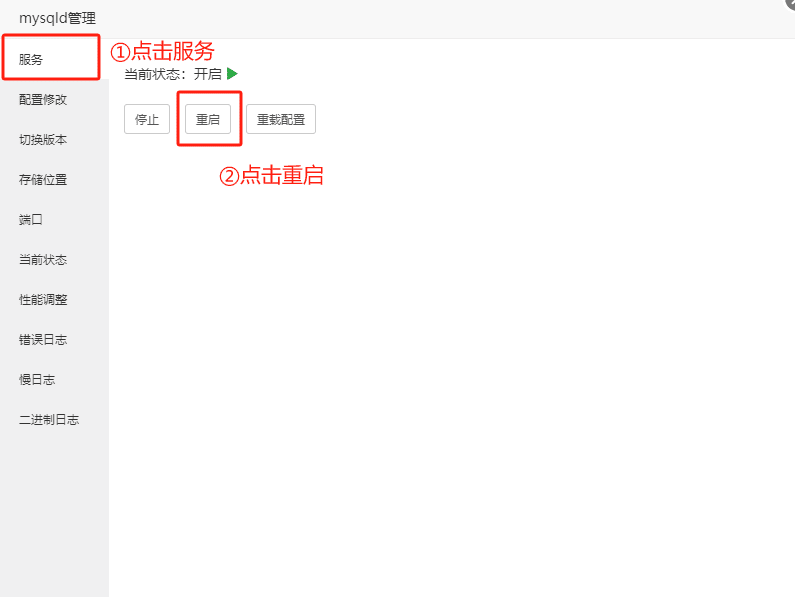 4.修改完成后,重启mysql