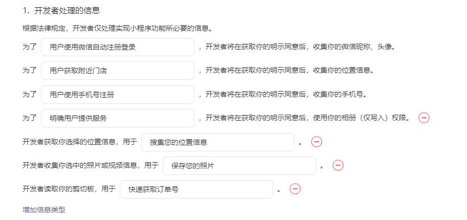 1、为了___开发者将在获取你的明示同意后,收集你的微信昵称、头像。(必选,不然会影响小程序点击授权登录无反应)