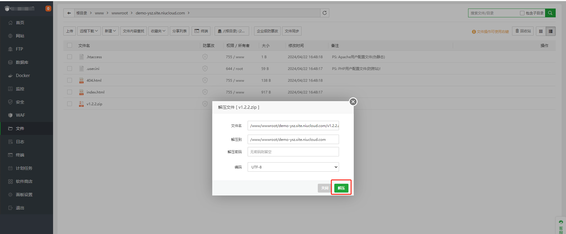 > 说明:如果取消勾选,还是会出现报错,那就删除域名所在根目录的user.ini文件