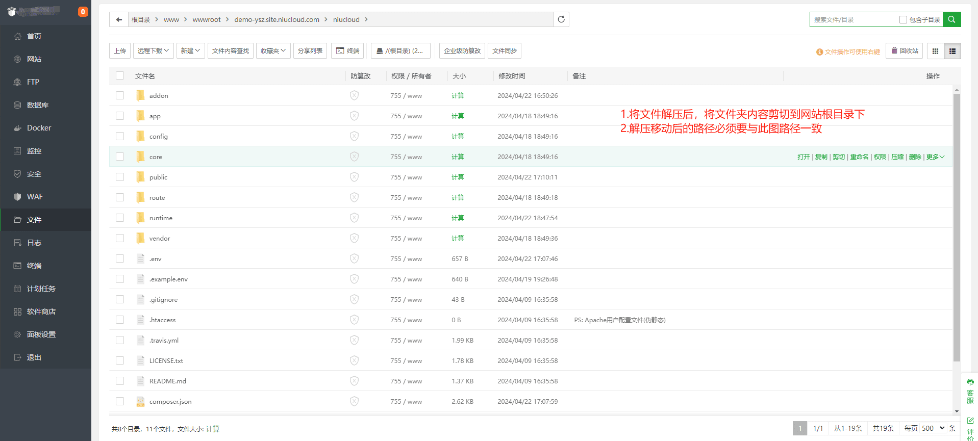 后将解压出的文件内容放至根目录下保持文件夹路径一致