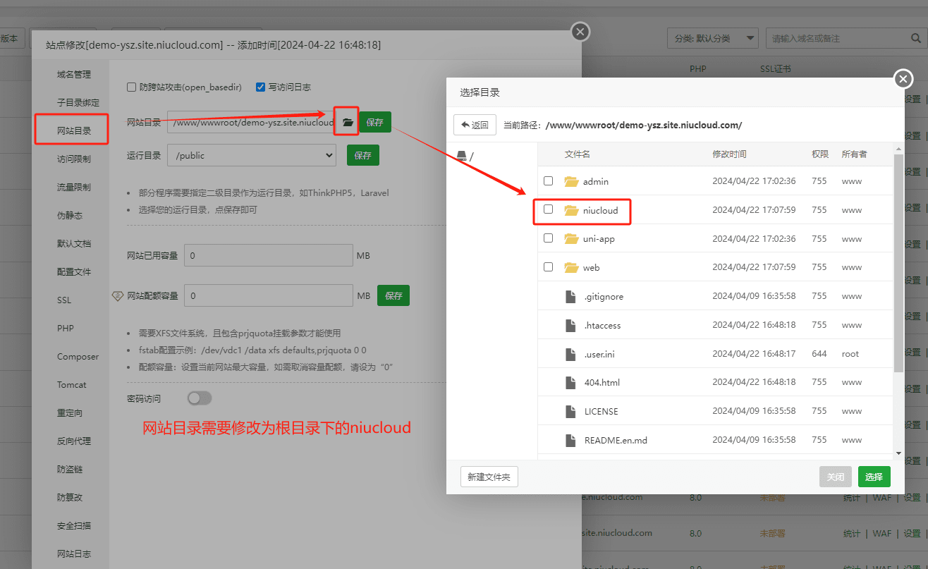 5.将运行目录指向niuclould下的public文件夹