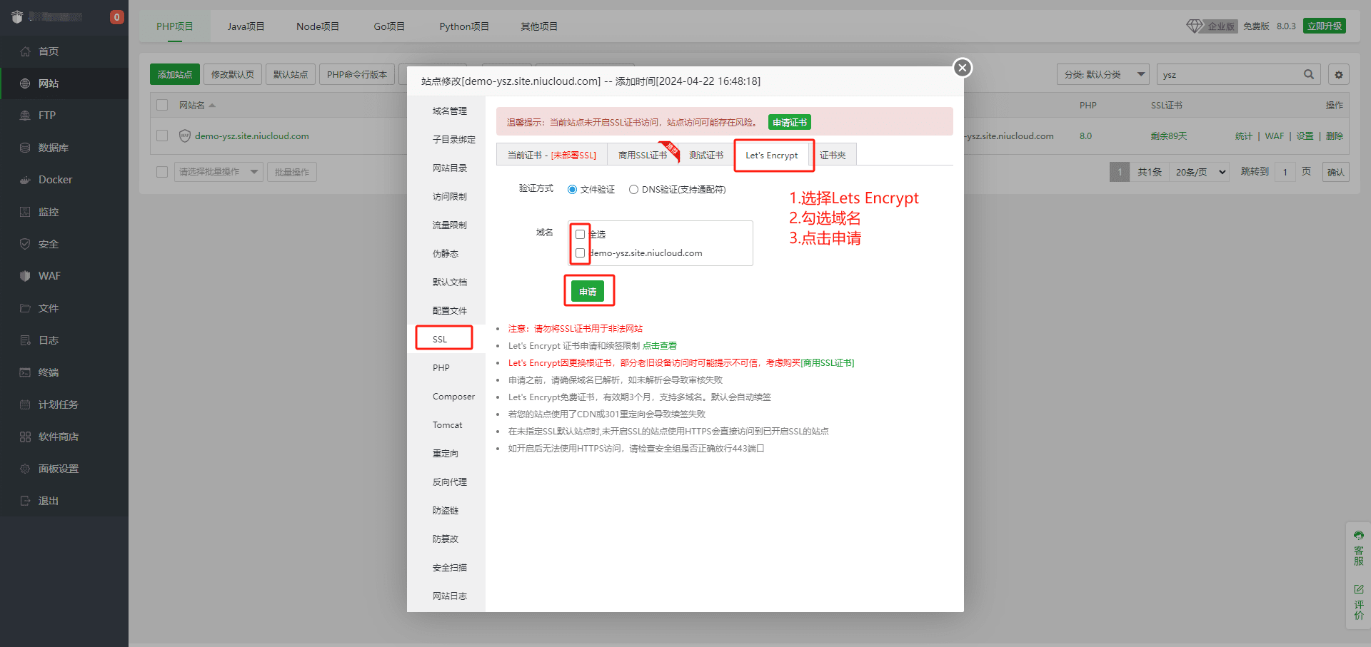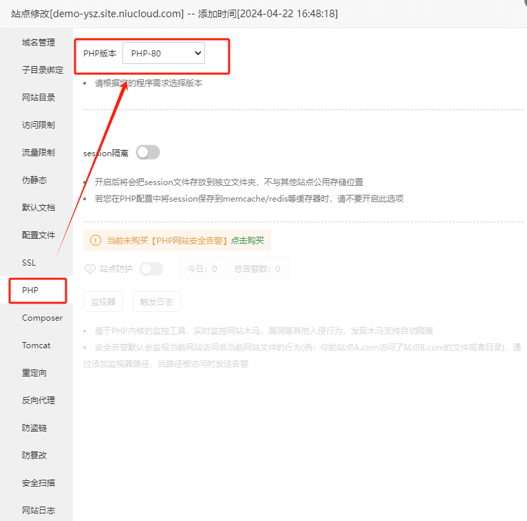 > 注意:PHP版本推荐使用80-82