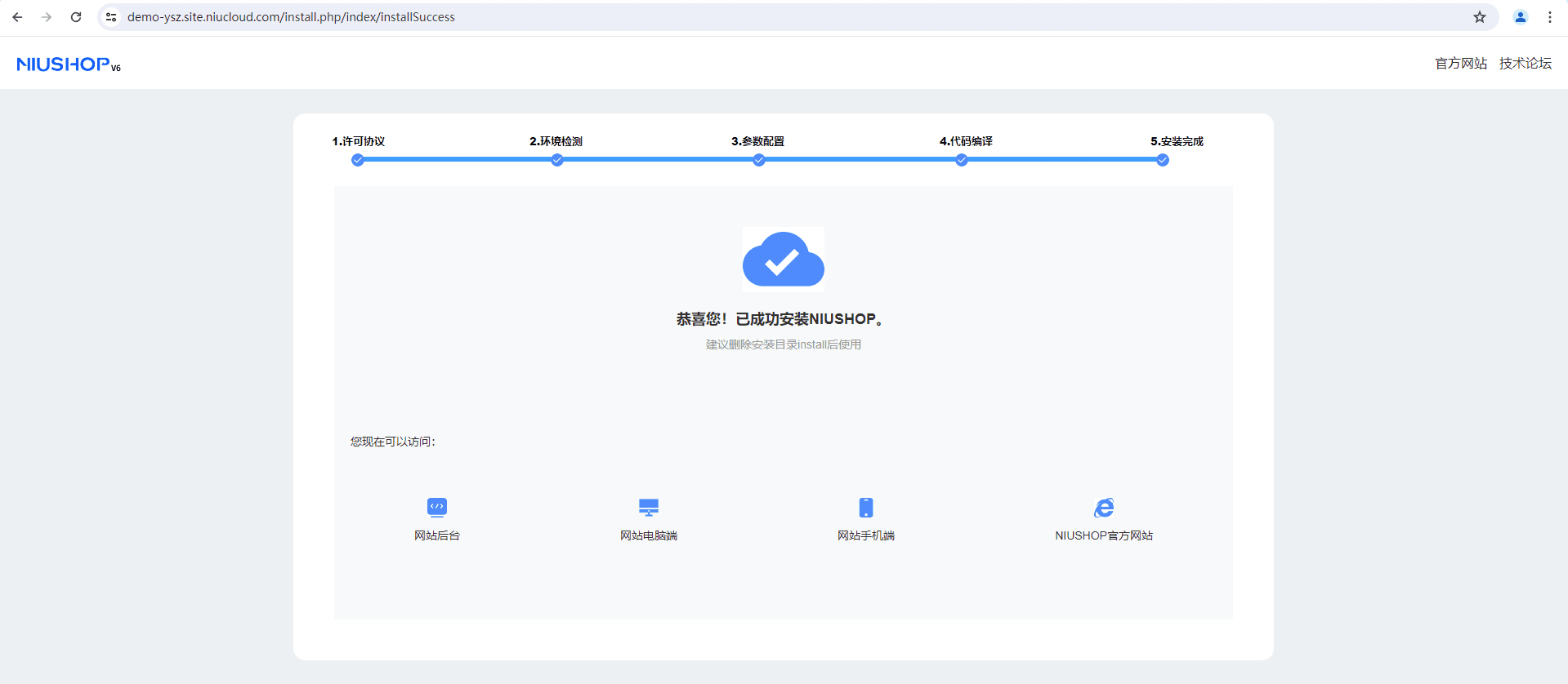 注意:安装部署完成后,需要在后台完成安装和云编译喔~