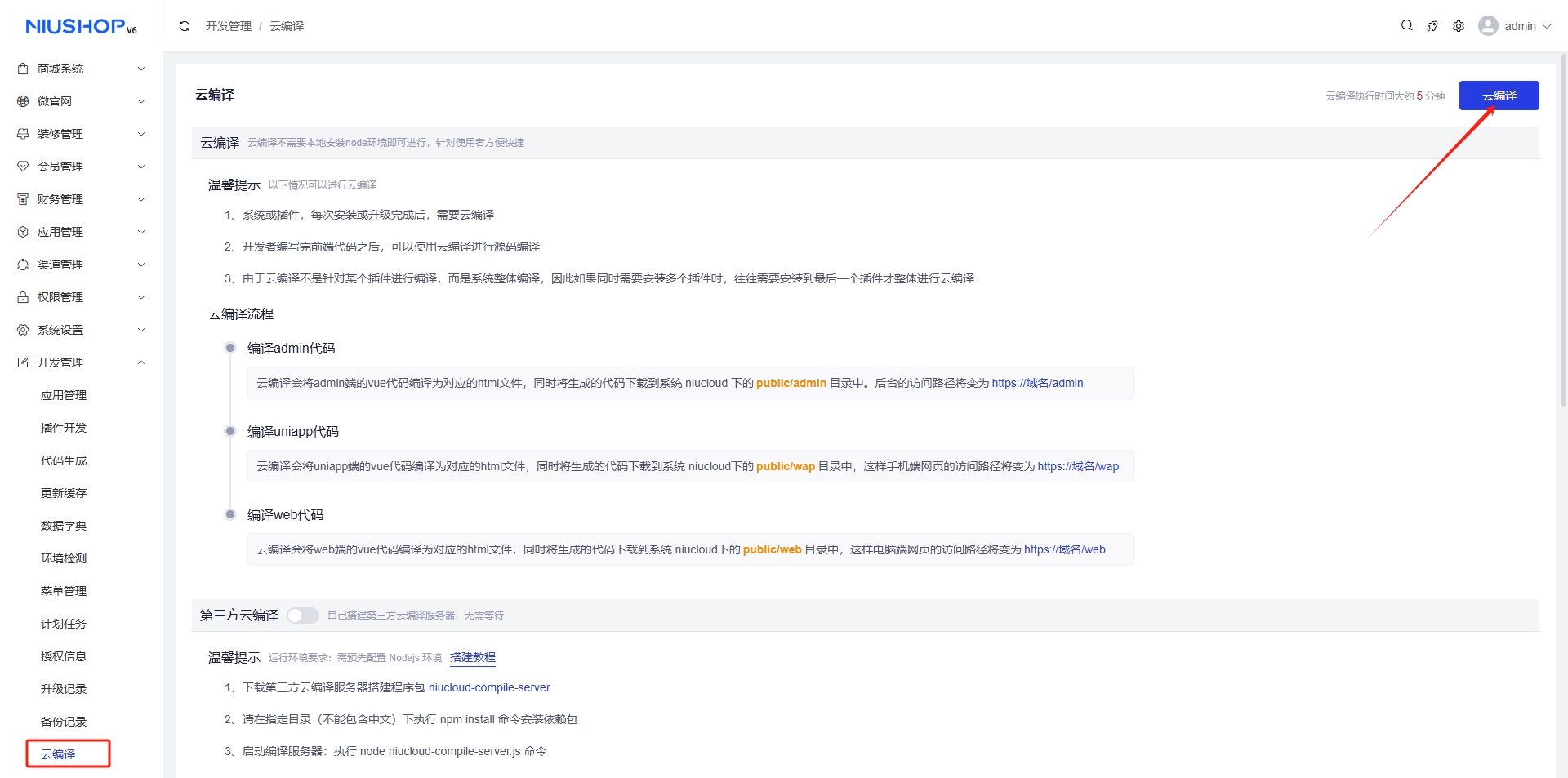 编译方法请参考https://www.kancloud.cn/niucloud/niucloud-admin-develop/3190211