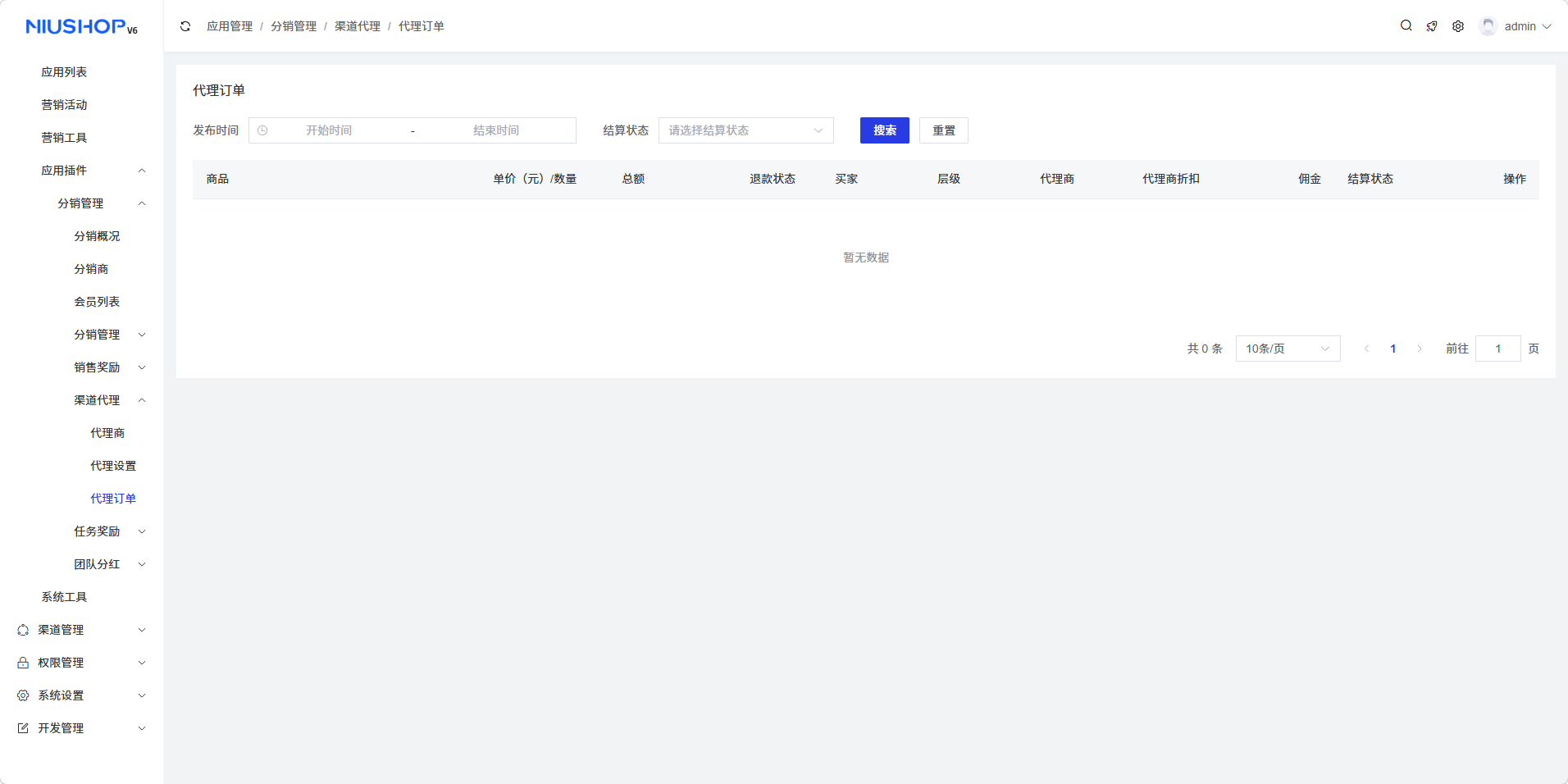代理订单页面帮助管理员全面掌握代理商的订单情况,确保佣金的准确计算和及时结算,有效管理渠道代理业务。