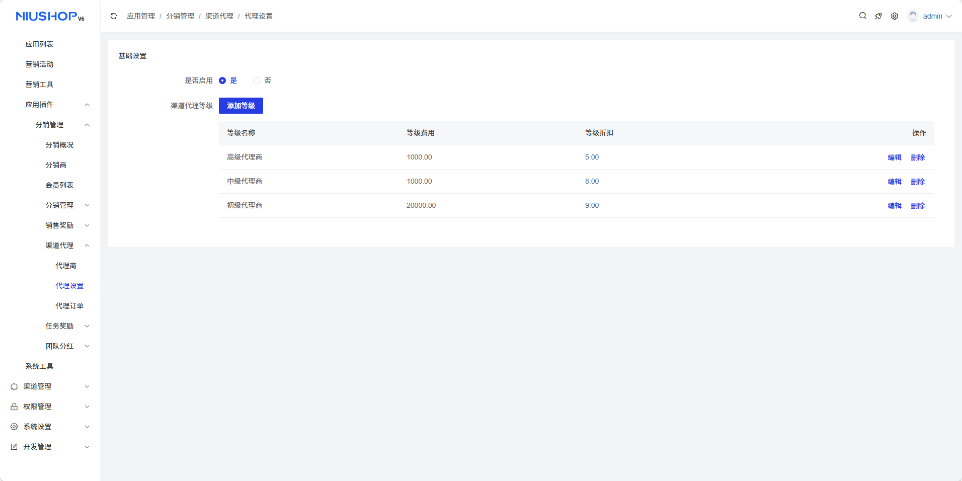 渠道代理等级设置