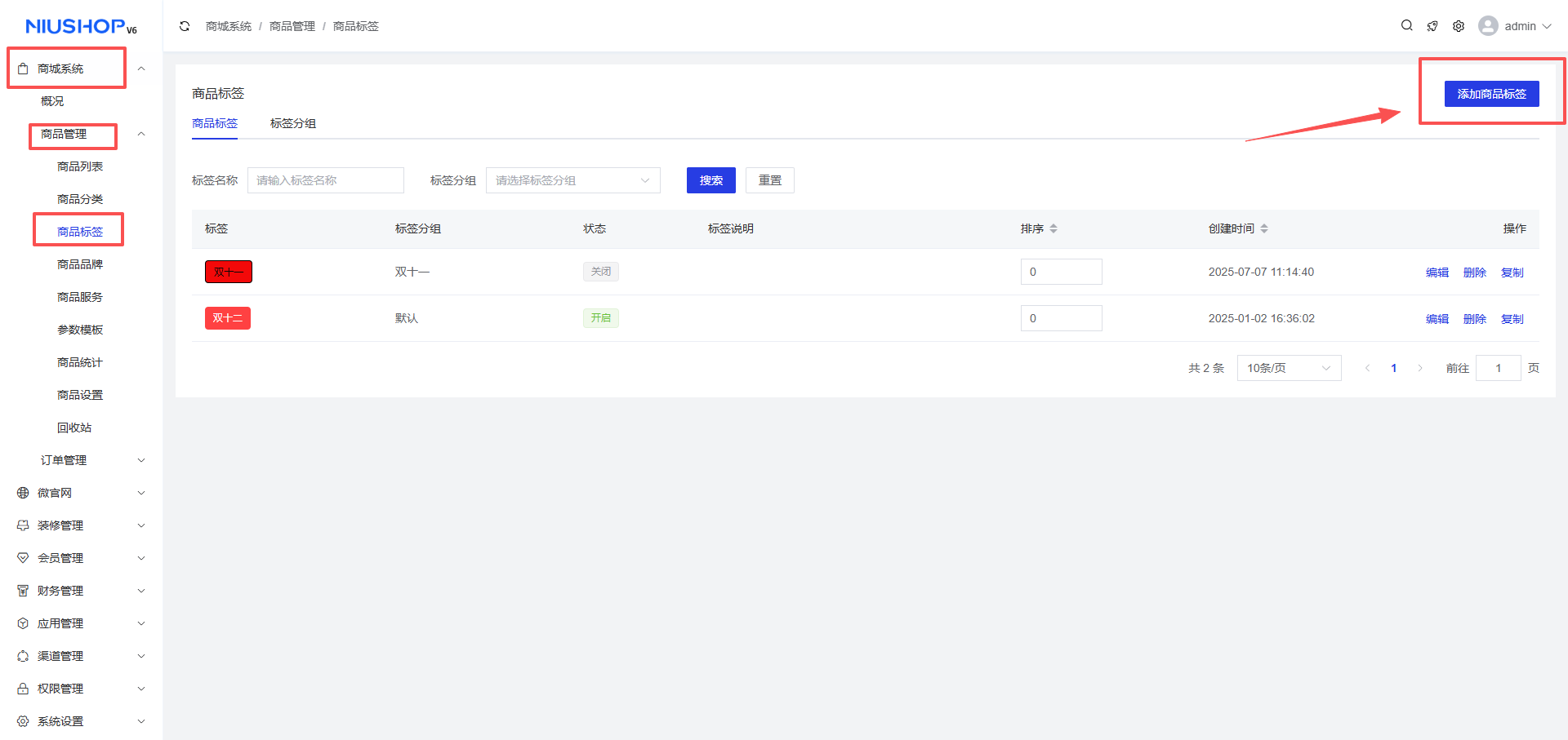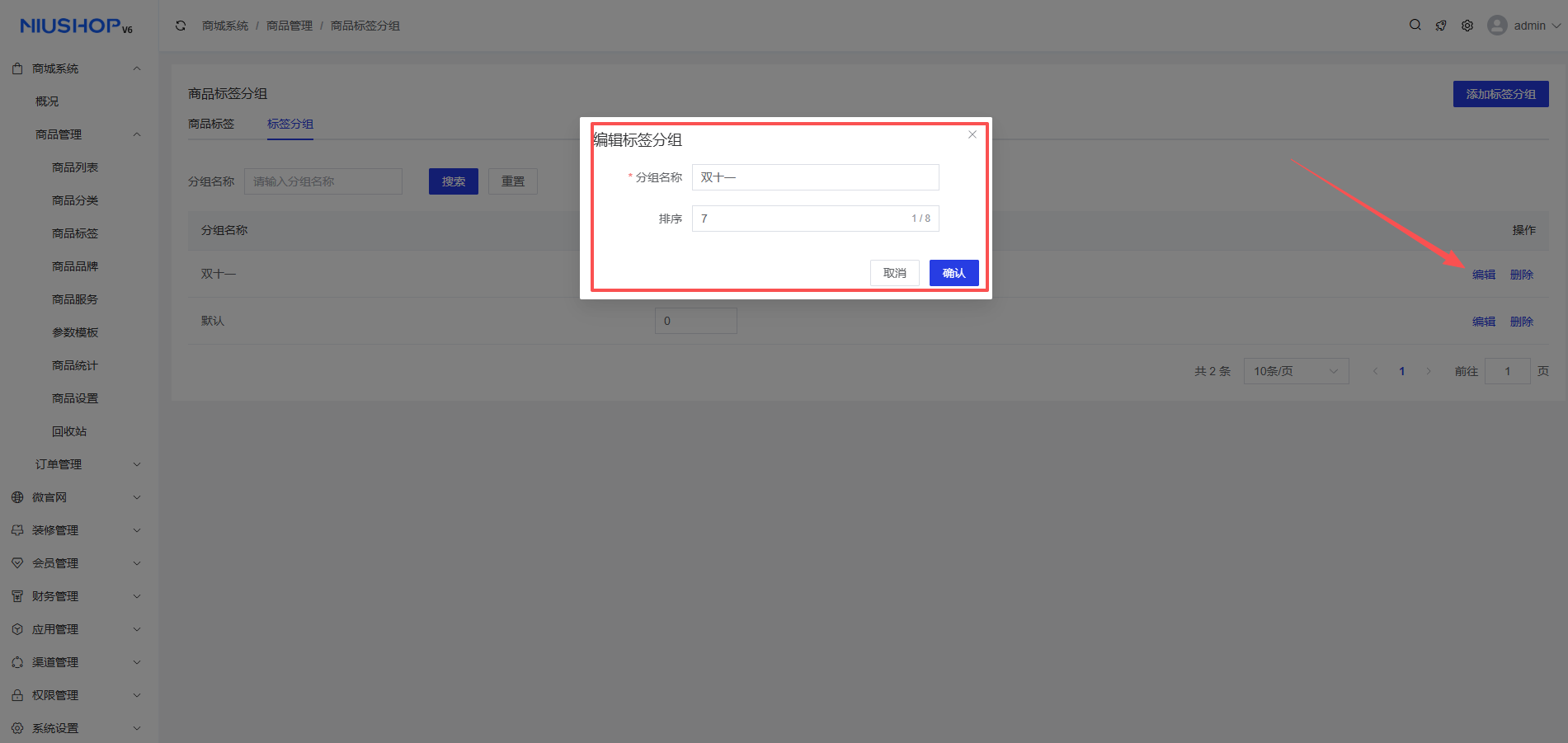 2、编辑商品标签