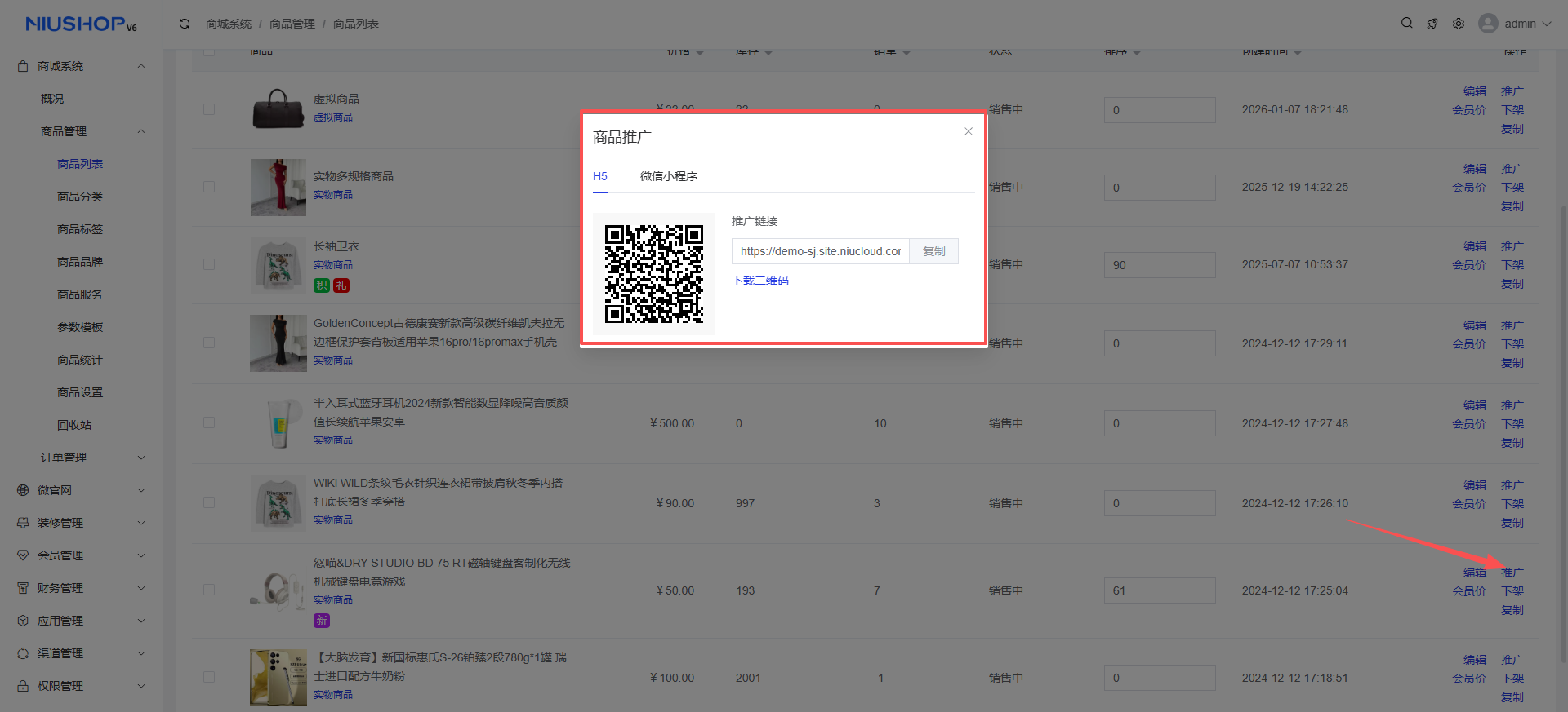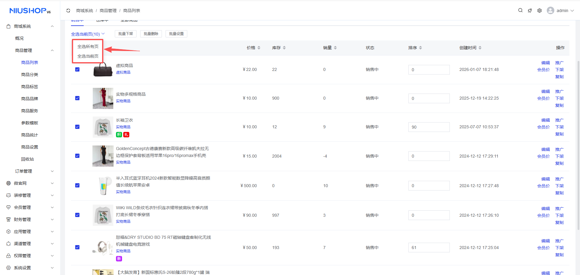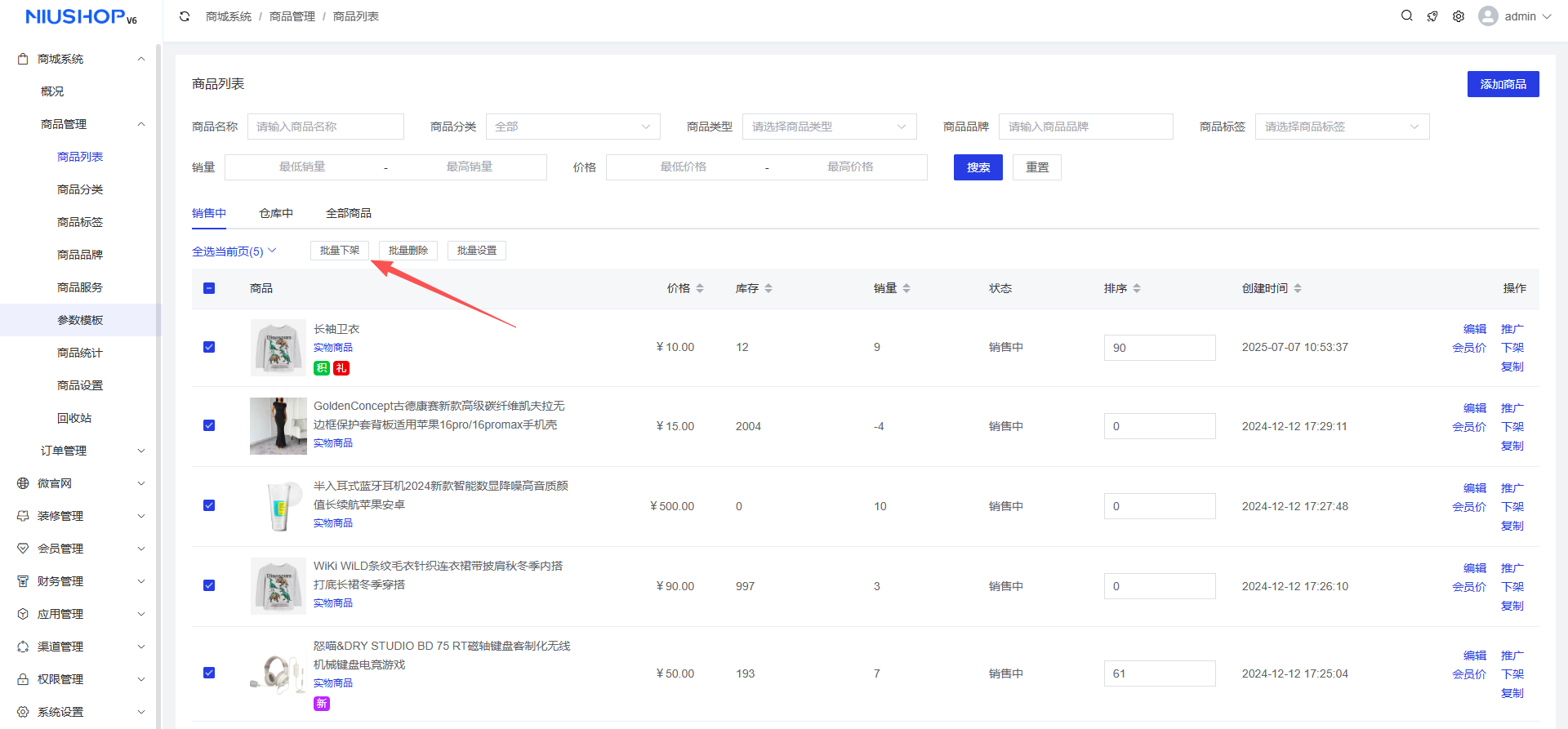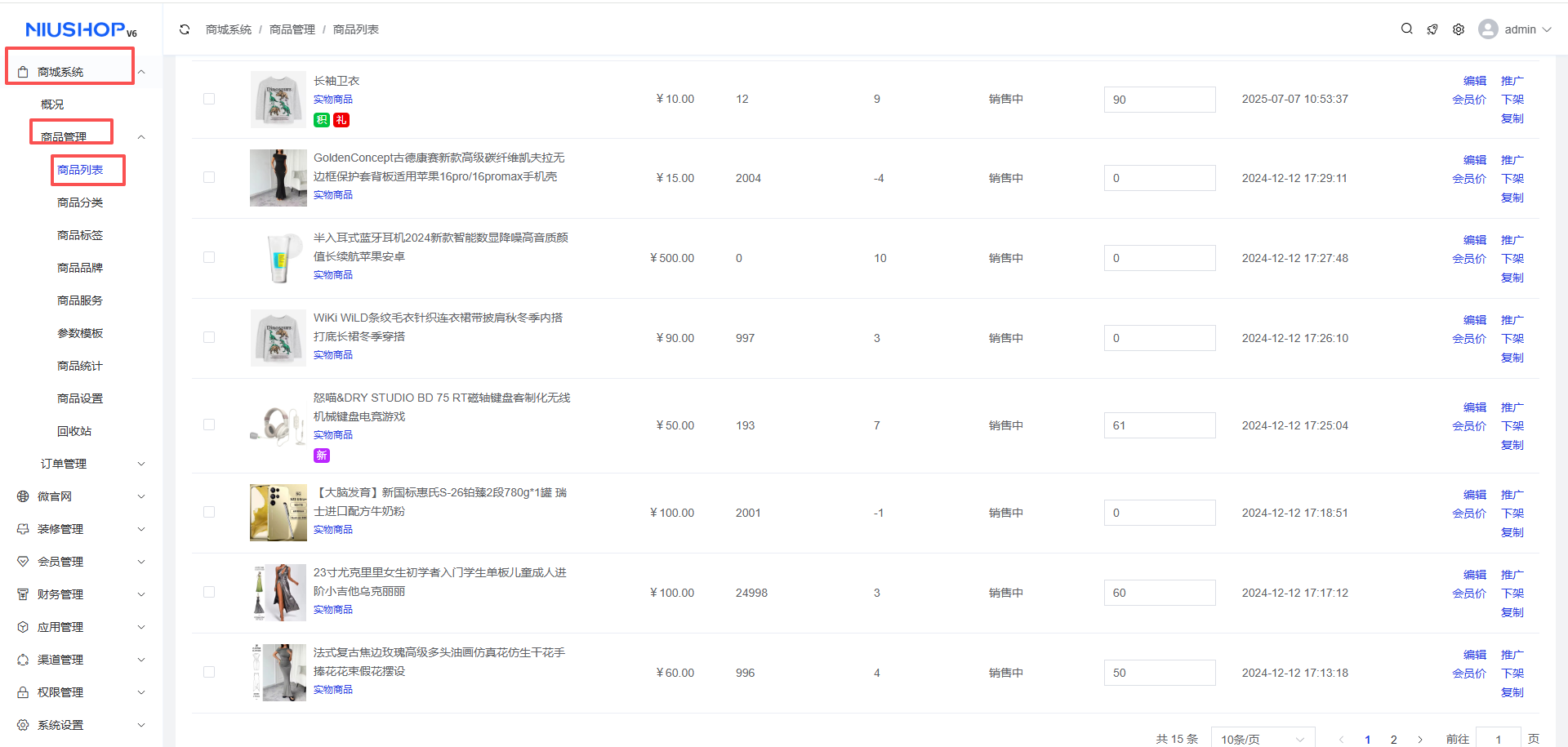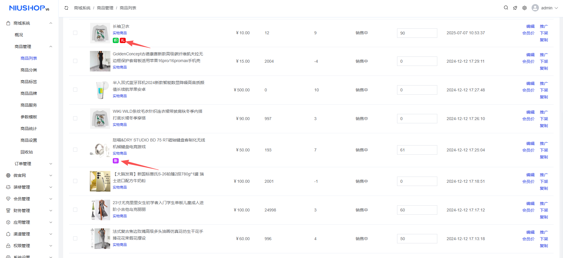商城系统 >商品管理 >商品列表