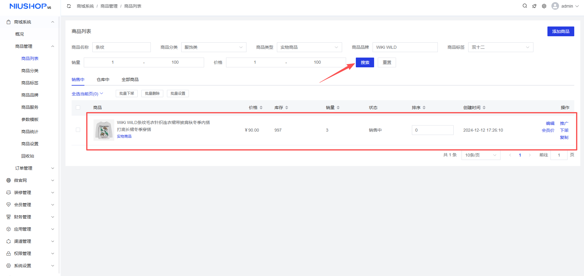 - 商品名称:支持按商品名称/分类/品牌/标签等进行搜索