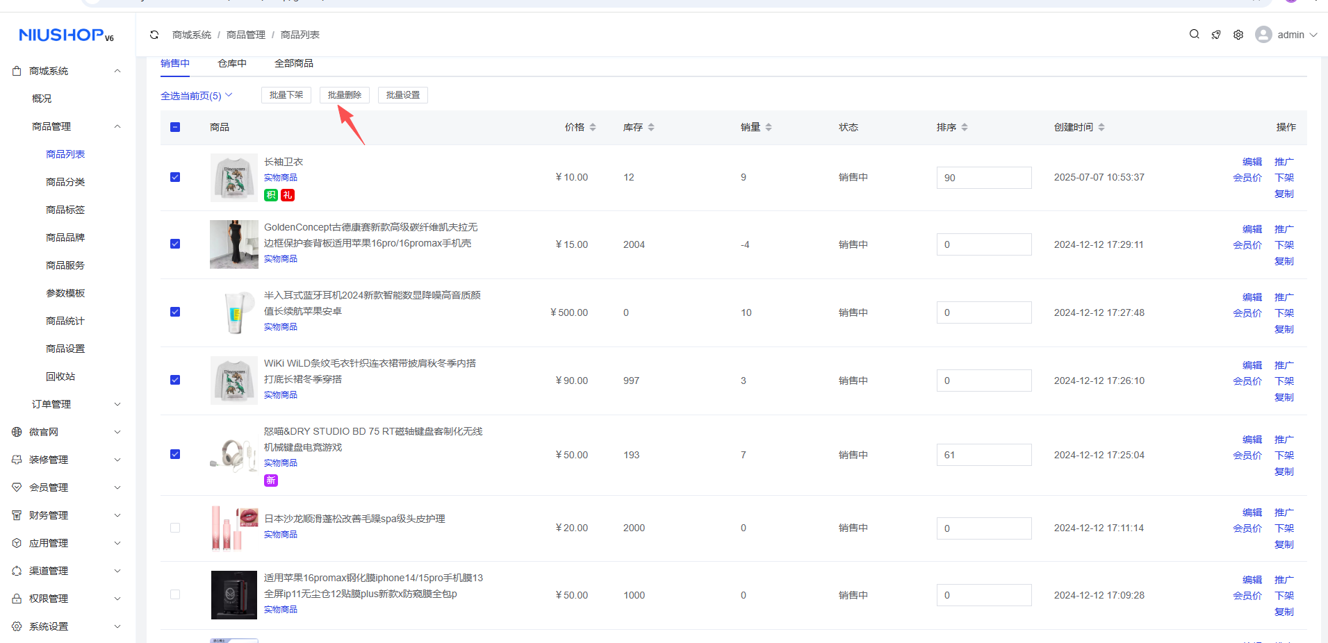 ⚠️需要注意:正在参与营销活动的商品,无法进行删除操作